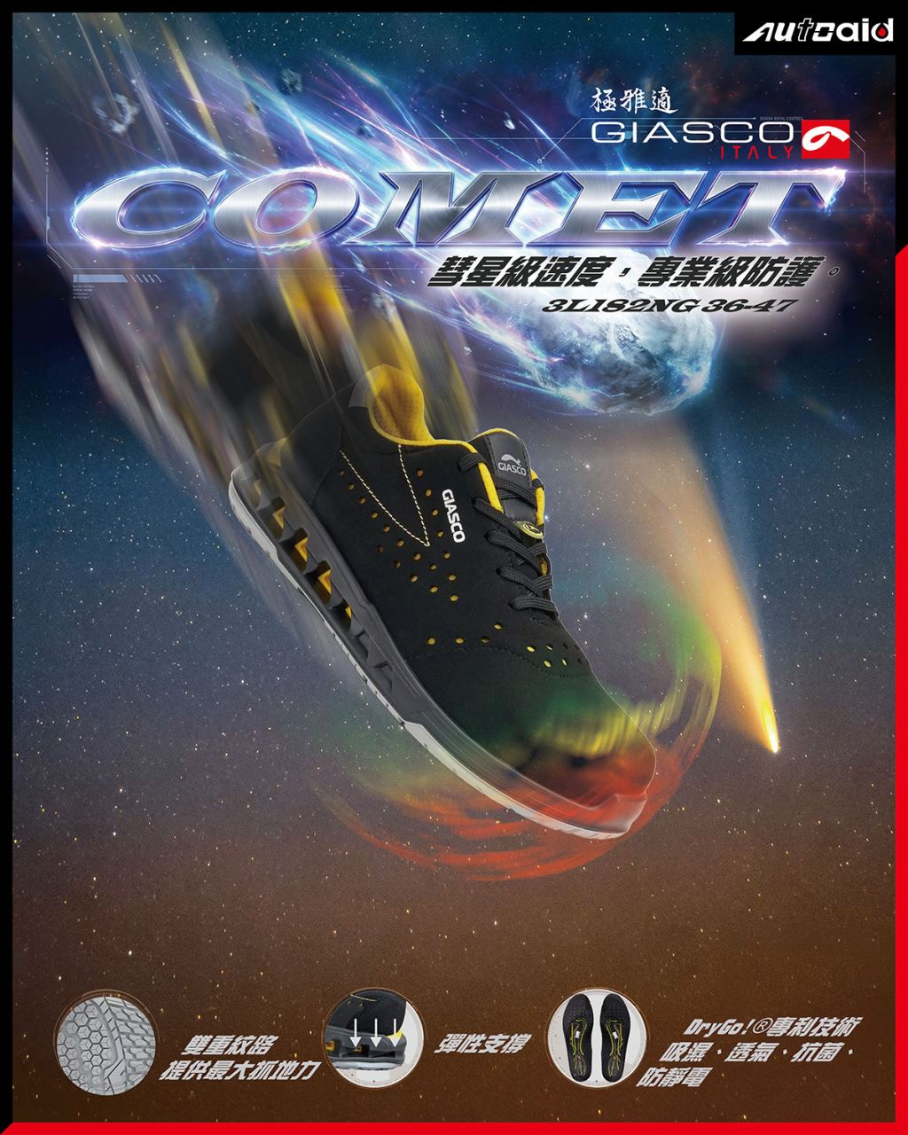 彗星登場|速度、保護、舒適一次到位! 以彗星般的速度與力量為靈感打造,這雙安全鞋不只強悍,更讓你久站也能輕鬆自如。